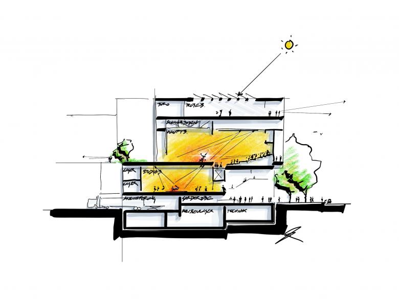Solar panels on the roof provide a portion of the building’s energy and, together with the green roofs, make an important contribution to climate protection. The building will also be barrier-free.