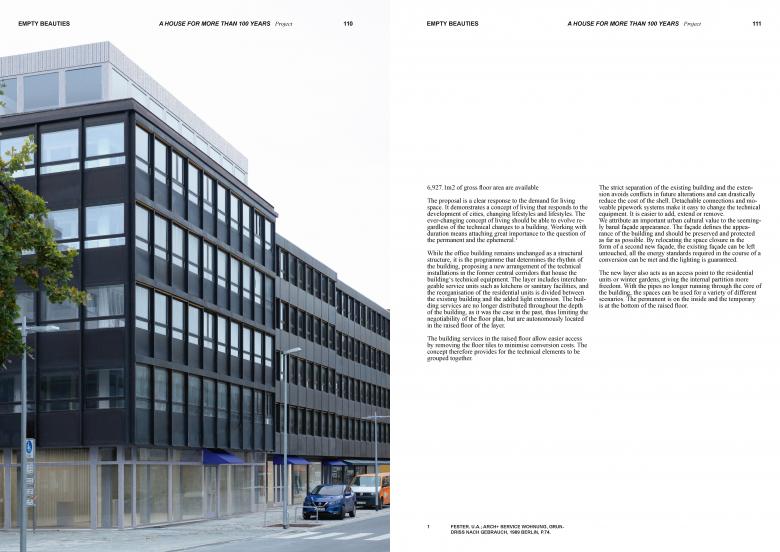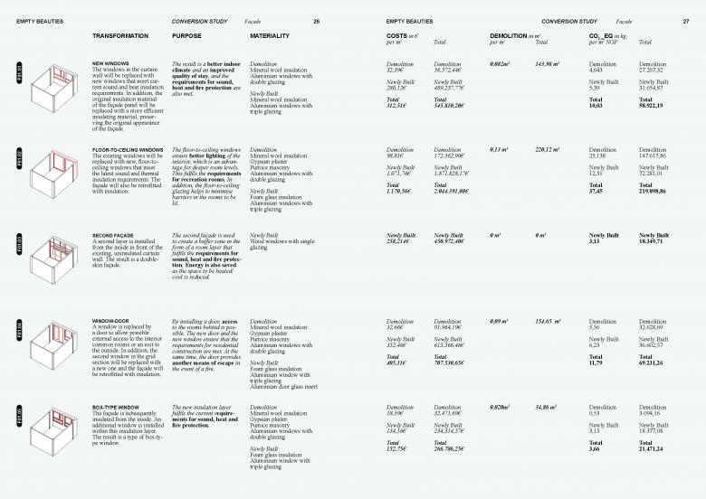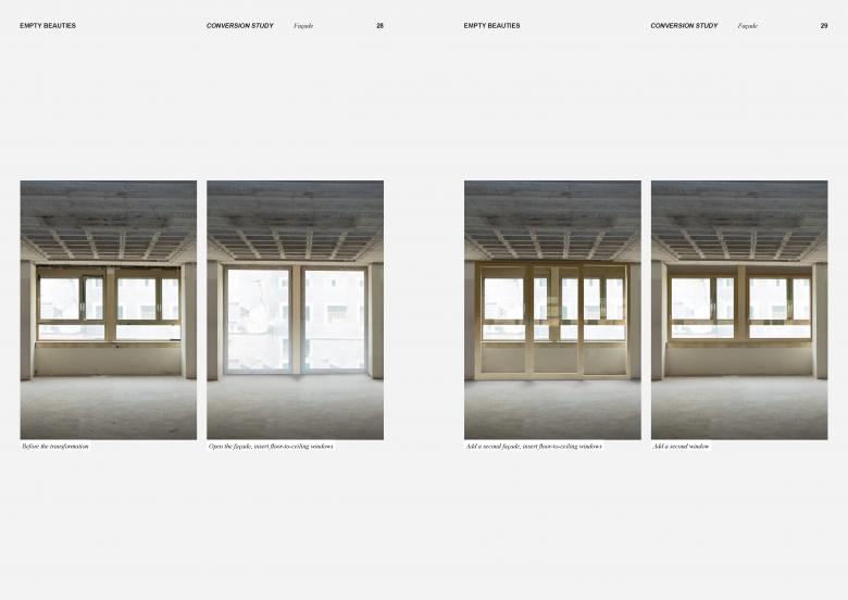 'Empty Beauties' examines the adaptive reuse of vacant office and administrative buildings, focusing on their transformation into residential spaces. Using a Research by Design methodology, it investigates the potential of skeleton-frame structures to accommodate contemporary housing while minimizing material waste and environmental impact.