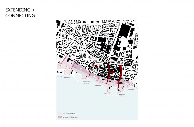 Due to the demolition of industrial facilities, the 5.50-hectare area is now largely a gravel surface used for parking and construction material storage. It stretches over more than a kilometer, acting as an urban gap between the city and Lake Constance. The underpass at the station is the only central connection. Therefore the project searches for architecturally applicable principles and potentials within a process of “learning from” suburban periphery, to rethink and reshape the existing void into a new link."