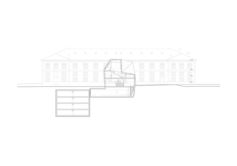 The scheme for the planned new Sion media library has a very strong visual relationship with the surrounding architectural heritage. The character traits of the former cantonal arsenal are highlighted by enhancing the original spaces, which gain significantly in terms of natural daylight. Alongside the new addition, the interior of the federal arsenal building will also undergo modest renovation.