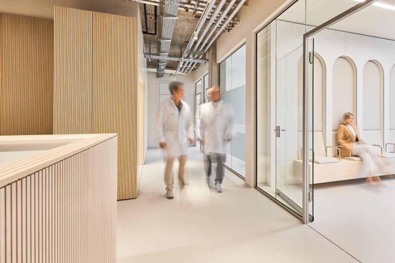 Helle, lichtdurchflutete Räume mit Atmosphäre und Aufenthaltsqualität, so formulierten die beiden Gründer ihren Anspruch an die neue Praxis. Ihre Vision: eine medizinische Umgebung zu schaffen, die über das Funktionale hinausgeht und eine neue räumliche Erfahrung bietet. Für das Architektenteam von Mint Architecture galt es, diese Haltung in ein Konzept zu übersetzen, das den hohen Anforderungen an Hygiene, Organisation und Diskretion ebenso gerecht wird wie der Wunsch nach Offenheit und Identität.