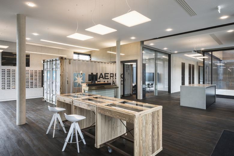 Andy Wolf, an Austrian independent spectacle brand, is strongly characterised by a manufacturing mind-set. This mind-set is clearly represented in physical form at the company's headquarters in Hartberg, where a new building with offices and a showroom, and fronted by a Corten steel façade, nestles into the landscape on the edge of an industrial park. The design – featuring clear-cut forms, natural-looking artisan-like materials and a reduced colour scheme – is by the kasp.architektur firm of architects. Architect Christoph Kaspar collaborated with lighting designer Daniel Jokesch from Ökoplan Energiedienstleistungen to integrate a lighting system in fitting with the company's design concept. It lights up workplaces and the showroom in daylight-like quality. The result is a resounding success thanks to the versatile and tailored deployment of Nimbus luminaires – which not only ensure perfect showcasing of the spectacle models in the showroom but also create perfect working conditions in production. Parallels can not only be found in terms of design but also in the calibre of the products: high quality in production not only plays a key role at Andy Wolf but at Nimbus too.