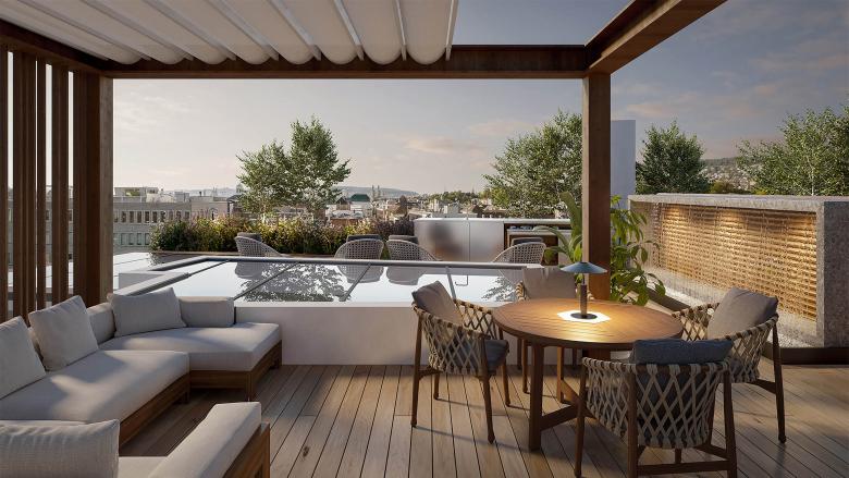 The new boutique hotel aims to make guests feel at home with authentic architecture and curated design highlights. The interior blends materials, art, and furniture into a cohesive masterpiece that unites luxury, tradition, and modern design. Guests will enjoy a gourmet restaurant, a bar, and a wine-tasting area on the ground floor. The rooftop terrace offers stunning city and lake views, while the spa and fitness area occupy the first floor. The hotel includes various rooms and suites, highlighted by a business suite with a library, fireplace, wine bar, and dining room that doubles as a conference space.