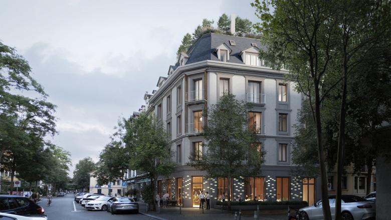 The former building was constructed in 1895 by the Zurich architects Dorer &Füchslin as part of a group of three buildings. Originally, all three buildings presented themselves as a cohesive, U-shaped Neo-Renaissance block-edge development made of exposed brick. In 1955, the corner building underwent significant alterations, during which the ground floor was glazed, and the façade details were plastered over.