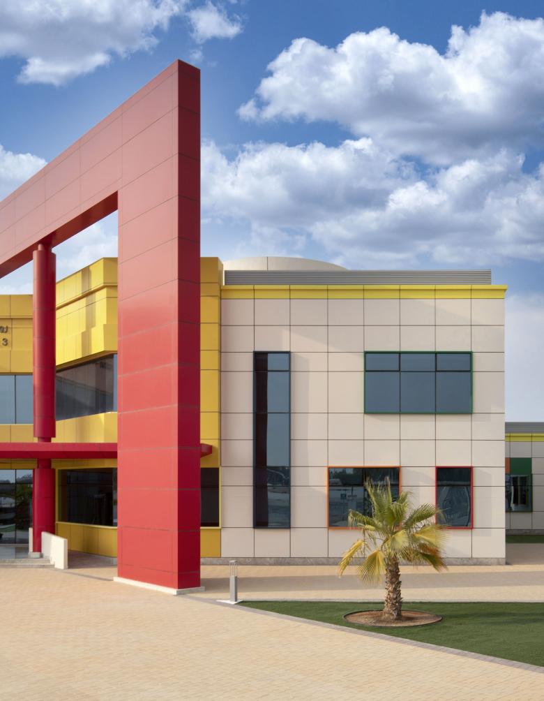 The layout derives by prototype project for Schools for UAE developed by UPA Italia by Paolo Lettieri Architects and UPA in JV with General Planning in 2009. The original project of School for C1 Cycle was developed for 1000 students. MOID built several of these across all UAE. In 2016 MOID decided to update the design of the school prototype including a small kindergarten and other functions for special needs students. The Minister himself wanted the project to be the first one designed in BIM.