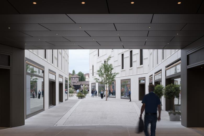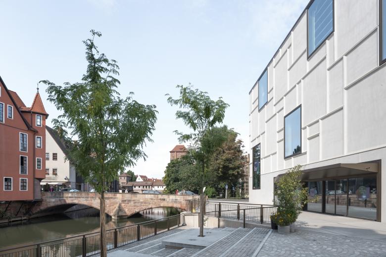 We therefore opted for an urban architectural figure featuring a gate in sight range from the Old Town’s market square that opens up a space affording a view of the banks of the Pegnitz. The public link to the river and the Karlsbrücke bridge that spans it creates a new urban road network that connects the northern and southern sides of the Old Town bordering the Pegnitz.