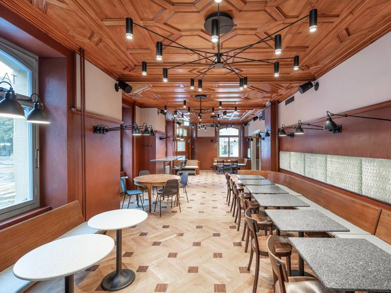 Für einen fortgesetzten Betrieb des Restaurants war eine technische Anpassung an die heutigen Anforderungen erforderlich. Eine neue Gastronomieküche, neue Toiletten und ein Hebelift machen das Restaurant attraktiv und hindernisfrei zugänglich.