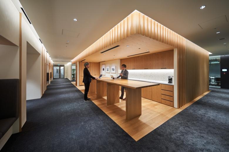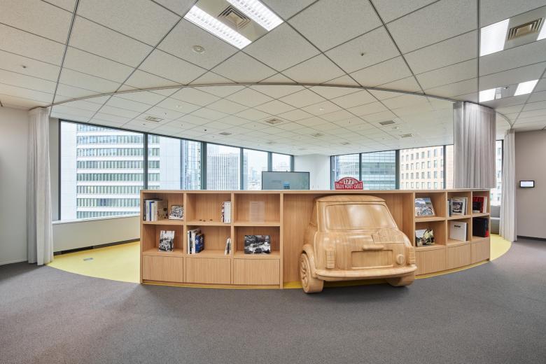 Marking the 40th anniversary of its founding, BMW Group Japan has established a new office in a prime location overlooking the beautiful Hamarikyu Gardens in Shiodome. Under the concept of Connected Works, which represents a modern and efficient way of working, our design team aimed to create an environment where hybrid teams with diverse backgrounds can consistently perform at their best.