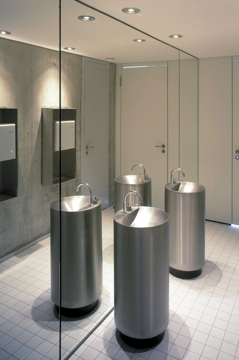 The building is the direct architectural translation of that attitude. It consists of a three-storey U-shaped building wrapping around an atrium. The specifically developed double façade reduces heat loss in winter and solar gain in summer. Its internal layer is operated manually, the outer layer consists of motor driven glass panels. According to weather, season, time of day or individual preference, the façade panels open up, a multitude of reflections creating a shimmering shell. The central hall is covered with transparent membrane cushions. It is the perfect setting for exhibitions or other events. The floor plan geometry achieves maximum flexibility for internal fit-out.