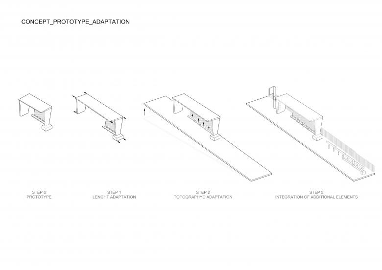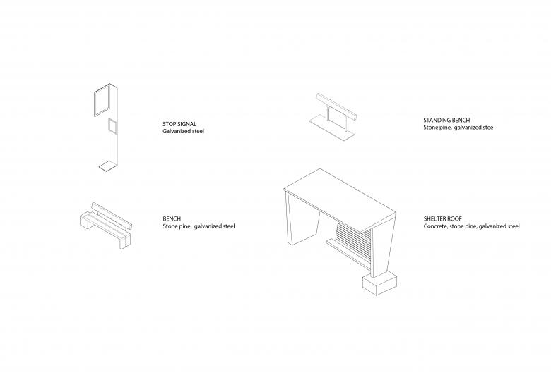 Sexten is a popular tourist destination in the Dolomites and, as a "tourism hotspot," suffers from heavy traffic. Initiatives at various levels aim to make the use of public transportation more attractive. This also includes the design, or so-called corporate design, of the local bus stops. At the initiative of the local tourism association, modular bus stops were to be conceived - starting from individual, combinable elements. The individual elements include a bus stop sign, a shelter with a display case and seating of various sizes, a standing rest, and an uncovered bench. Depending on usage intensity and available space, different combinations of bus stops can be created. Thanks to the modular design, the structure can be adapted to the specific conditions of each location, while maintaining a consistent aesthetic throughout the town.