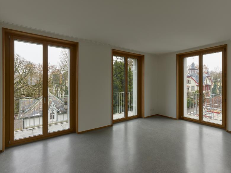 Drei südseitige Innenhöfe verwandeln die ehemaligen grossflächigen Druckmaschinenräume im Erdgeschoss und im Untergeschoss in attraktive und lichtdurchflutete Büroräumlichkeiten. In den drei Obergeschossen werden 10 neue Wohnungen gebaut. Eine umlaufende Balkonschicht, eine grosszügige Dachterrasse und der Zugang zu den Flachdächern über den Büroräumen bieten allen Wohnungen grosszügige Aussenflächen.