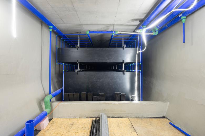 To achieve net-zero operation without the use of fossil fuels, Dockyard relies for its energy supply on green, regenerative energy sources such as solar, geothermal, and ambient air. One of the largest ice stores in Germany is a central and efficient part in this integrated energy concept. For this one of Osthafen’s disused freight tunnels has been put to good use. On the roof of Dockyard, there are 1,250 sqm of solar hybrid collectors and 300 sqm of photovoltaic modules. The combination of all these sources results in an innovative energy concept which keeps the entire operation of this office facility climate-neutral in accordance with requirements for LEED Zero Carbon.