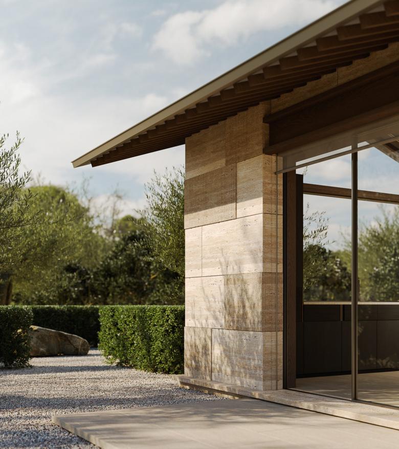 Die Architektur von Studioforma interpretiert das Wohnen als stillen Rückzug – geprägt von Licht, Schatten und tektonischer Präzision. Massive Steinmauern geben dem Gebäude seine monolithische Erscheinung, während gezielt gesetzte Öffnungen den Dialog zwischen Innen und Außen inszenieren.