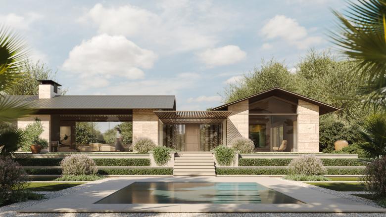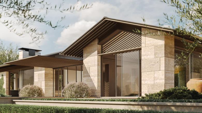 Der reduzierte Materialkanon – Stein, Beton, Holz – schafft eine zeitlose Atmosphäre, in der Architektur und Landschaft zu einer Einheit verschmelzen. Innenräume öffnen sich mit großflächigen Verglasungen zur Natur, bleiben jedoch durch eine sorgfältige Zonierung stets intim.
