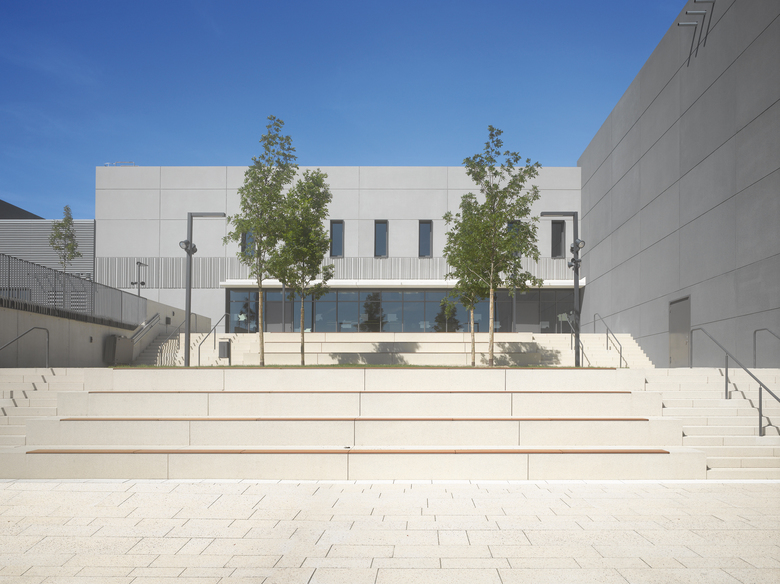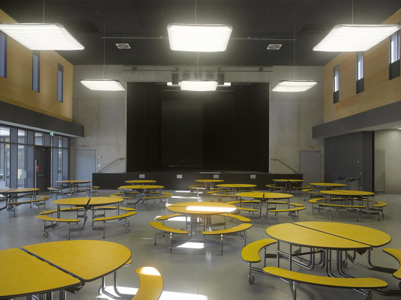 Für beide Bildungseinrichtungen wurde jeweils ein als Band gestalteter Komplex mit zwei Ebenen für Schule und Verwaltung gebaut. Die beiden Gebäudeensembles verlaufen parallel in Ost-West-Richtung. Zur gemeinsamen Nutzung stehen ein „Auditorium“ für Theater- und Musikevents sowie großzügige Sportanlagen im Freien bereit. Ein Busbahnhof fasst bis zu 50 Schulbusse.