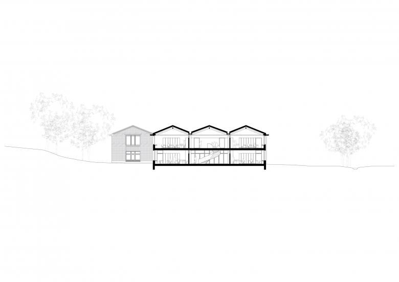 Mit der neu zu planenden Schulerweiterung in Wängi sollen einerseits betriebliche Defizite behoben werden, andererseits soll eine Entflechtung der verschiedenen Altersstufen herbeigeführt werden. Die Intervention beschränkt sich auf zwei Eingriffe auf dem Schulareal. Dadurch wird eine neue, klare und altersgerechte Zuordnung erreicht. Mit der Erweiterung des bestehenden Schulhaus Imbach II können sämtliche Schulräume der Oberstufe in einem Gebäude untergebracht werden. Der bestehende, terrassierte Pausenhof wird mit dem zweigeschossigen Erweiterungsbau räumlich klar gefasst. Die Erweiterung ordnet sich unter dem Thema «Weiterbauen der vorhandenen Bausubstanz» ins Gesamtbild der Schulanlage ein. Im Innern wird die räumlich strukturelle Logik des Bestandes fortgeschrieben. Aufgrund der räumlichen und betrieblichen Defizite schlagen wir einen Ersatzneubau am Standort des ehemaligen Wartheimgebäudes vor. Der dreigeschossige Neubau markiert neu den Arealeingang von der Steinlerstrasse her und bildet damit das «neue Gesicht» nach aussen hin. In der räumlichen Wahrnehmung und seiner Präsenz liest sich der Neubau als Pendant zum bestehenden markanten Dorfschulhaus. Die allseitige Ausbildung des Gebäudekörpers mit den Einschnürungen und Rückstaffelungen trägt zu einer adäquaten Adressbildung und einer Einordnung in den Kontext bei. Der Neubau wird so in die abfallende Topographie gesetzt, dass zwei Zugangsniveaus entstehen. Ein unteres Niveau dient dem Zugang zur Tagesbetreuung. Ein oberes Niveau erschliesst die beiden Kindergarteneinheiten direkt ebenerdig und schliesst auf gleicher Höhe wie der bestehende Kindergarten Steinler an.