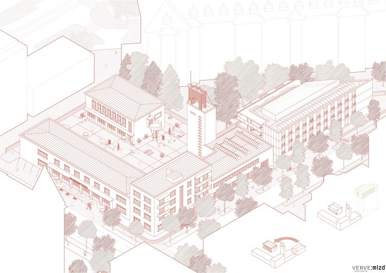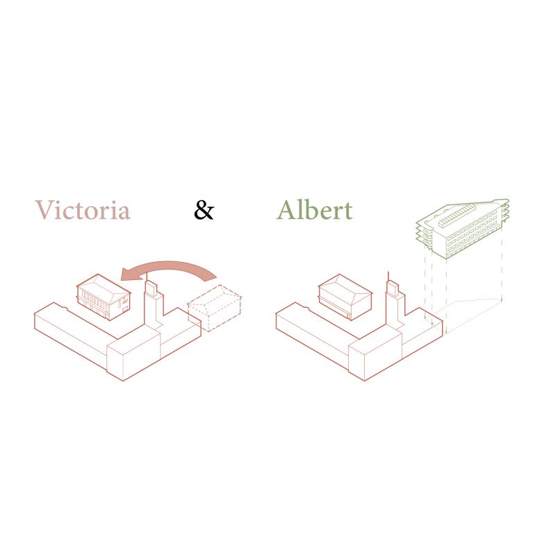 Die ehemalige Feuerwehrkaserne «Victoria», eine der bedeutendsten Vertreterinnen der einheimischen Moderne aus der Zeit vor dem Zweiten Weltkrieg, bleibt integral erhalten. Der alte Schlauchtrocknungsturm wird zum gemeinschaftlichen Waschsalon samt Wäschepaternoster und der Saalbau im Norden zieht in den Innenhof um. An seine Stelle tritt «Albert». Ein zeitgenössischer Wohnungsbau mit öffentlicher EG-Nutzung, gesponnen aus den Wohngeschichten der künftigen Bewohner*innen.