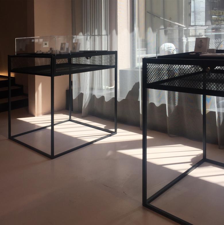 Taylor made furniture for exhibition of jewellery, accessories and care products, piercing switch stations and a workshop space for the jewelry designer’s supplement the existing equipment.