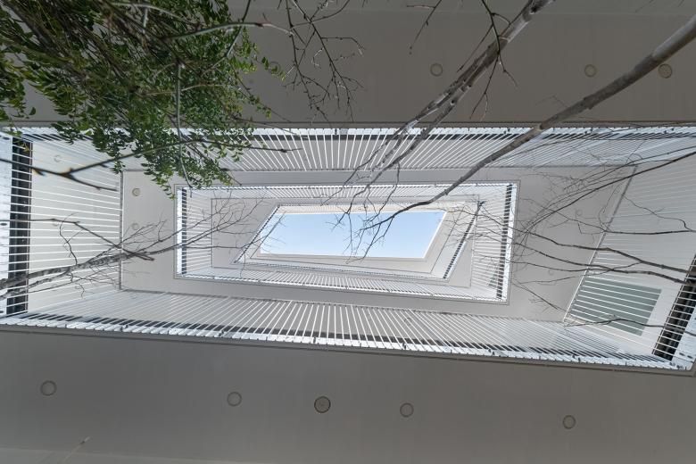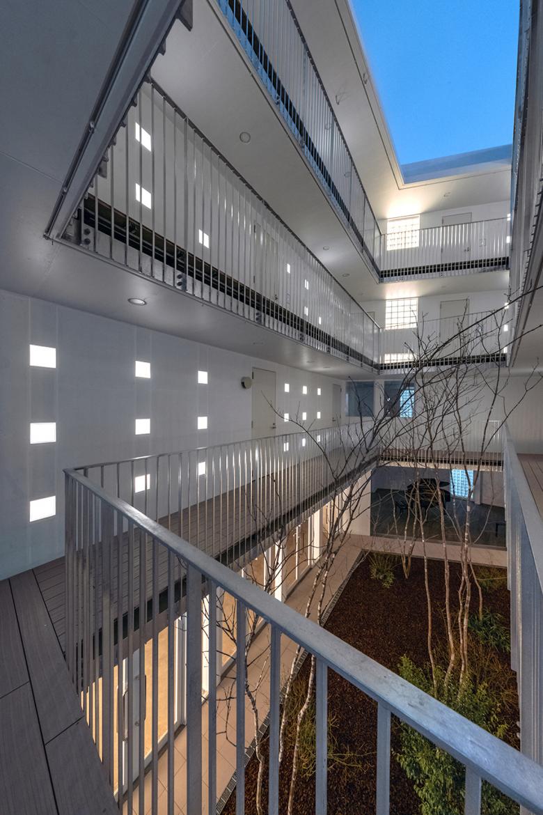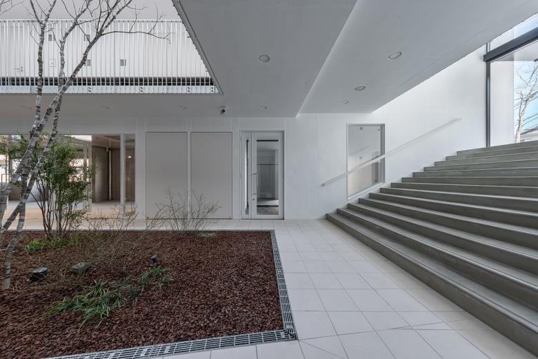 Cross-sectionally, the first floor was planned as a shop and music studio, while the second to fourth floors were planned as soundproofed units. The courtyard was positioned as an element to facilitate communication between each floor, aiming to realise a complex for music lovers and local residents who can enjoy musical events without any hesitation.