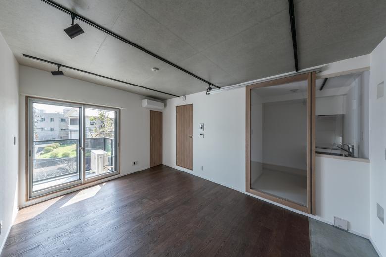 The first thing that caught our attention in the design process was the presence of music departments at music and art universities in the neighbourhood near Meito Ward. Despite the fact that a lot of musical talent was shining through, it turned out that the area ironically lacked the kind of soundproofed flat environment that would satisfy musicians as it does in Tokyo. It was therefore decided to start this project as a soundproof flat for the many people who live with music.