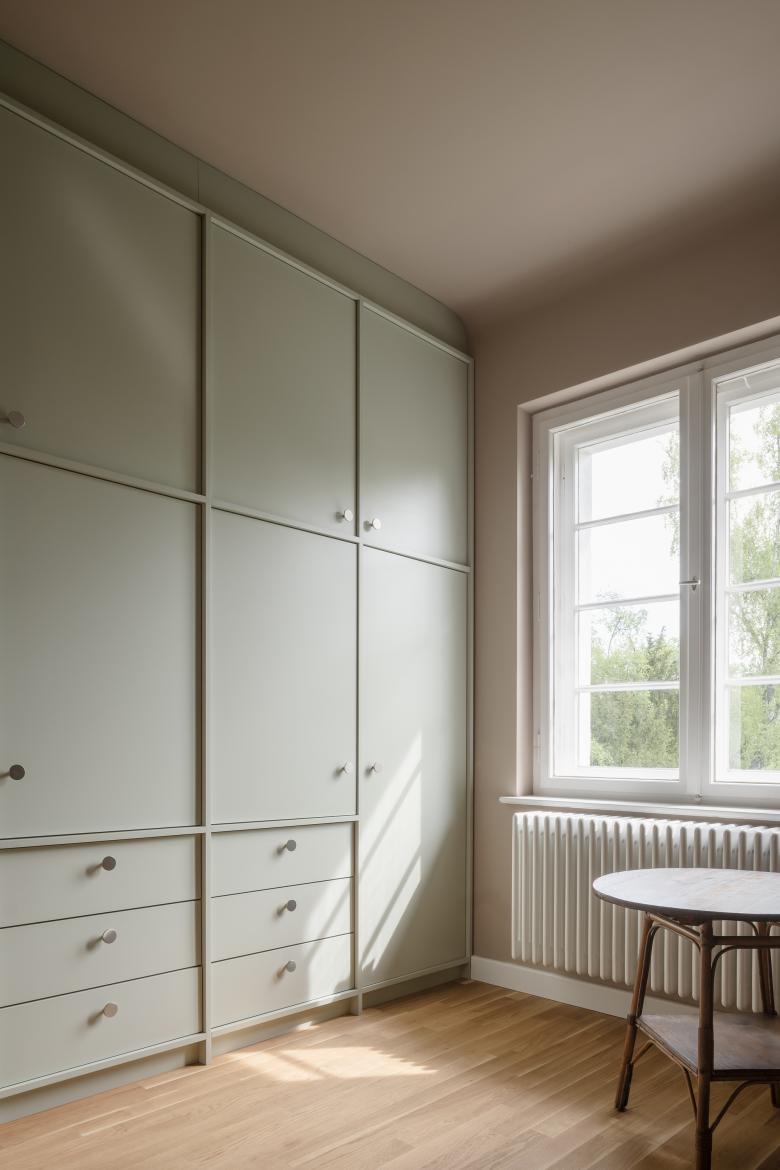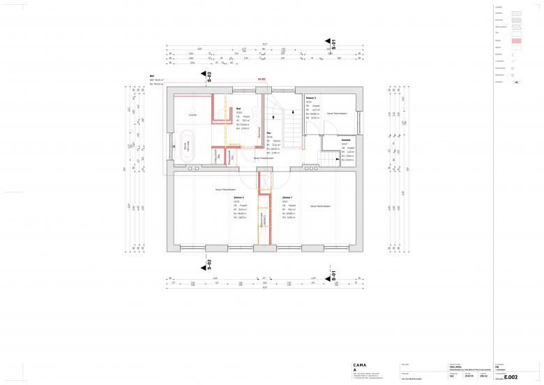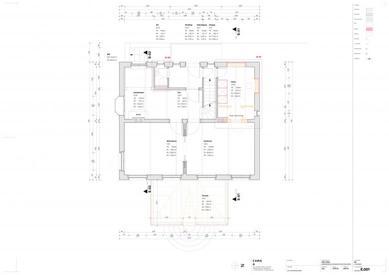 Wunsch der Familie war es, das Haus auf einen technisch-energetisch, aktuellen Stand zu bringen und die Grundrisse der einzelnen Etagen auf die heutigen Wohnbedürfnisse anzupassen. Im Rahmen der Vorentwurfsplanung habe ich einen Maßnahmenkatalog erstellt. Dieser Umfasste alle sanierungs-, modernisierungs- und Umbauarbeiten sowie die Ausstattung. Schnell wurde klar, dass die gesamte Maßnahme in mehreren Zeitabschnitte realisiert werden muss, um genügend finanziellen Spielraum zu haben. Hierbei wurde der Schwerpunkt der ersten Umsetzungsstufe auf den Wohnwert gelegt, dass heisst, dass die Umbaumaßnahmen, die Modernisierung der Oberflächen wie Wände, Böden und Decken, sowie die Einbaumöbel im Vordergrund standen. Daneben wurden auch die sanitären Leitungen und die Heizleitungen erneuert, ebenso wie die gesamte Elektrische Anlage.