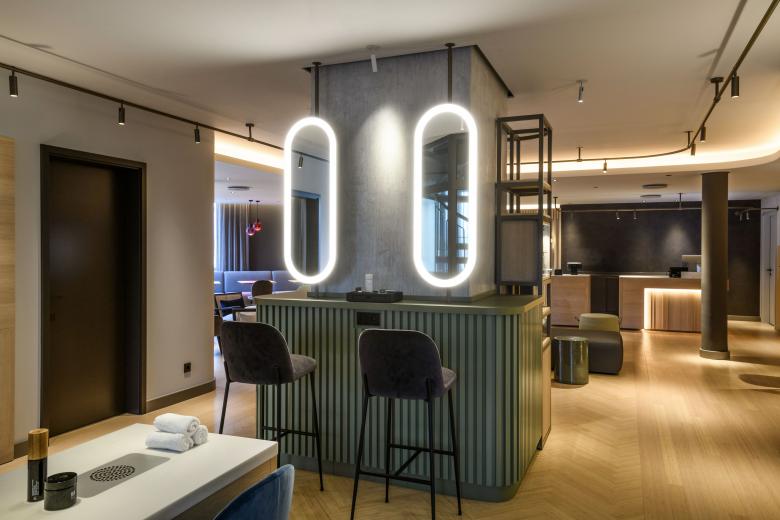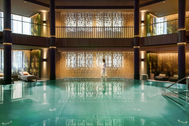 The concept for the redesign of the pool and wellness area is part of the overall considerations for the new hotel character, its positioning in relation to the hotel competitors in the immediate vicinity and its structural circumstances. In the midst of the hustle and bustle of the big city, a relaxing retreat has been created.