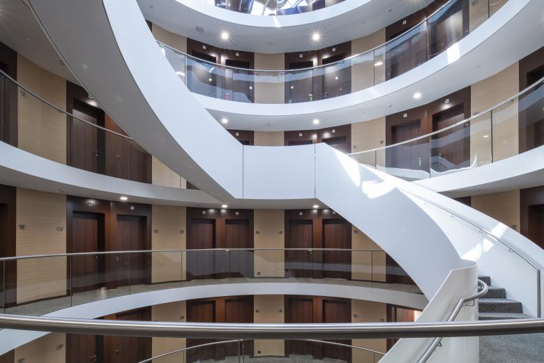 One of the major challenges of the project is to construct the entire above-ground portion using prefabricated elements—precast slabs, walls, and parapets—in order to meet a particularly tight schedule. Construction, which began in April 2017, plans to complete a full 800 m² floor every 9 days.