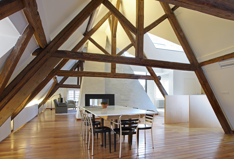 Daylight enters through new sawtooth roofs that connect both existing roofs. The former apartment contains the supporting functions. This allows for the attic to be opened and the roof trusses restored, thus becoming iconic elements in the space. Two contemporary zinc dormers give the transformed dwelling a new identity and diminish the seclusion of the attic, without compromising the historic character of the city.