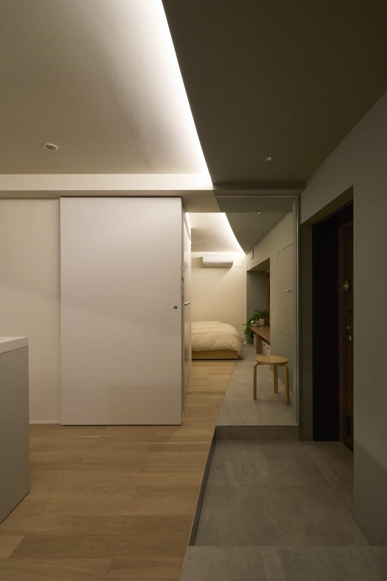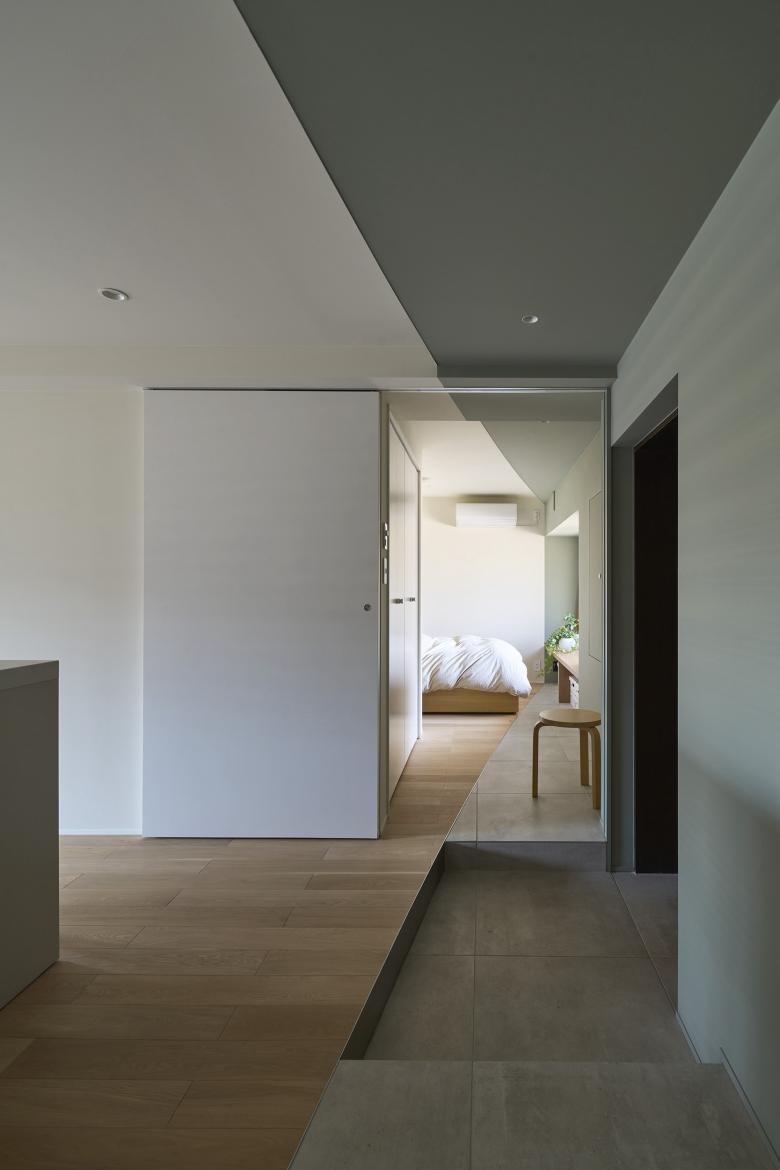 The apartment that the client purchased for his home is located near the railroad tracks, a few minutes walk from a small railway station. The vicinity is a quiet uptown residential area, with a laid-back atmosphere that emanates from the trains running through houses, the people walking in the neighborhood, and even the residents coming in and out of the apartment.