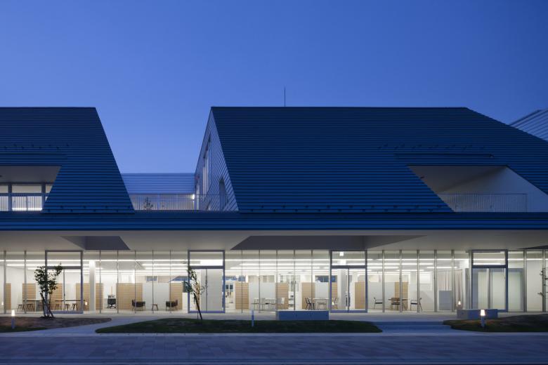 The starting point for the large roof is to explore the uniqueness of Kitagata Town, such as the portable shrine of the Northern Festival and Enkyoji Temple. Beyond that, we were looking ahead to the possibility of a large roof that would realize a bright and comfortable indoor environment by developing a simple and rational roof guided by Japan's climate and nature. The large roof with deep eaves blocks the summer sun and allows natural ventilation even on rainy days, but the interior of the first floor is dark. Therefore, a large mountain-like roof was cut out like a valley, and four deep terraces named valley terraces were set up.