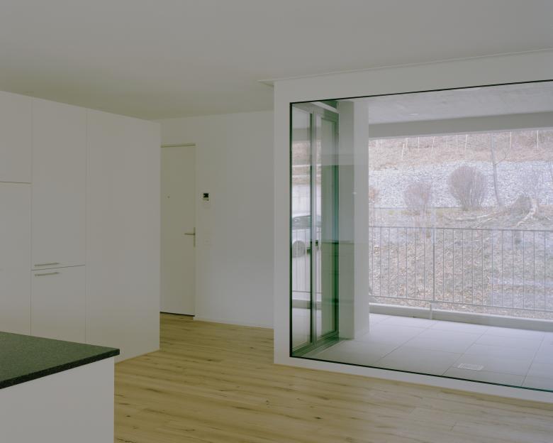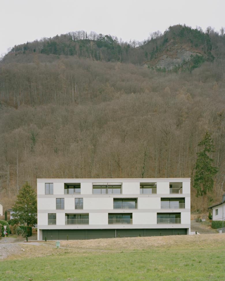 Located on the slope between Meierhofstrasse and Buchenweg, the apartment building is located in a quiet location near the forest. The topography of the plot allows the entrance to the building to be detached from traffic.