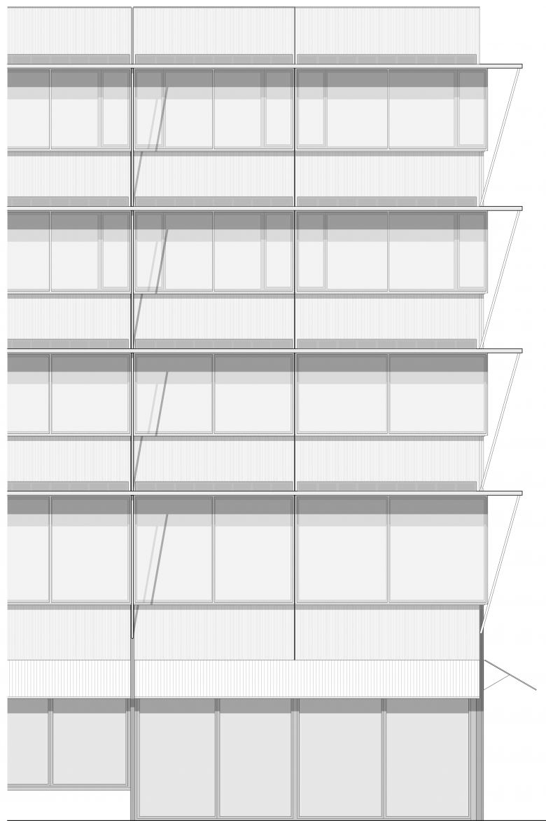 The multi-storey car park building responds to its relatively prominent position with a strikingly slender concrete structure and a lushly planted facade. In contrast the hospital and the ancillary buildings are timber-built with massively constructed underground floors. The prefabricated dry timber construction system uses purely mechanical connections, ensures speedy construction, reduces the grey energy used in production, and allows the building components to be reused later. Photovoltaic modules integrated in the facades produce energy while also providing shade and protection from the weather.