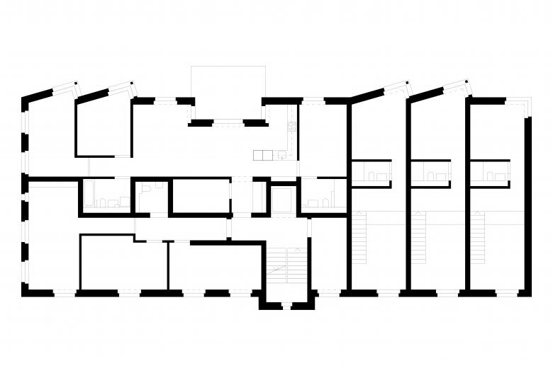 Das Gebäude reiht sich dank der sorgfältig gestalteten, symmetrischen Stirnfassade gut in die Bebauungsstruktur aus dem 19. Jh. ein. Seitlich gliedern Erker und andere Gebäudevorsprünge die Fassade und vermitteln so zu den zweigeschossigen Nachbarbauten. Die Erker ermöglichen zudem ein lärmabgewandtes Lüften. Das Haus reagiert auch mit seiner inneren Organisation auf den Kontext und das gewachsene Terrain. Maisonettewohnungen und die sanfte Modellierung des Terrains binden das «Zürcher Untergeschoss» geschickt ein. Der von Müller Illien Landschaftsarchitekten gestaltete Freiraum besteht aus einem dicht bepflanzten Garten und einem Hof mit gemeinschaftlichen Aufenthaltsbereichen.