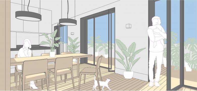 The building has two fronts: one facing Rua da Aliança, a silent street with small buildings, and another facing Rua Monte Alegre, which is also essentially residential. The elevations were designed based on the need for a more uniform urban language and seek to take advantage of adjacent alignments, filling the front of the corner and enhancing the relationship between neighboring buildings.
