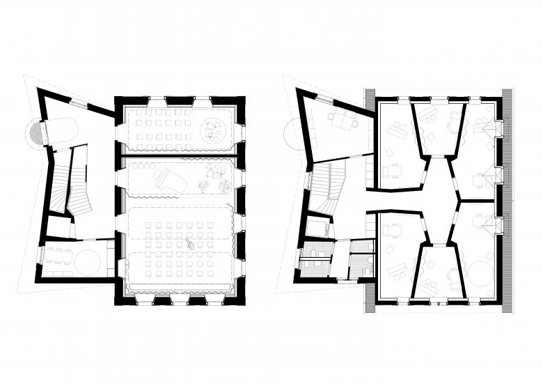 Eine ehemalige Kapelle wurde in eine Musikschule transformiert. Dabei webt ein polygonaler Anbau das Vorhandene weiter, akzentuiert es neu und verhilft so zu frischem Leben und Ausdruck.