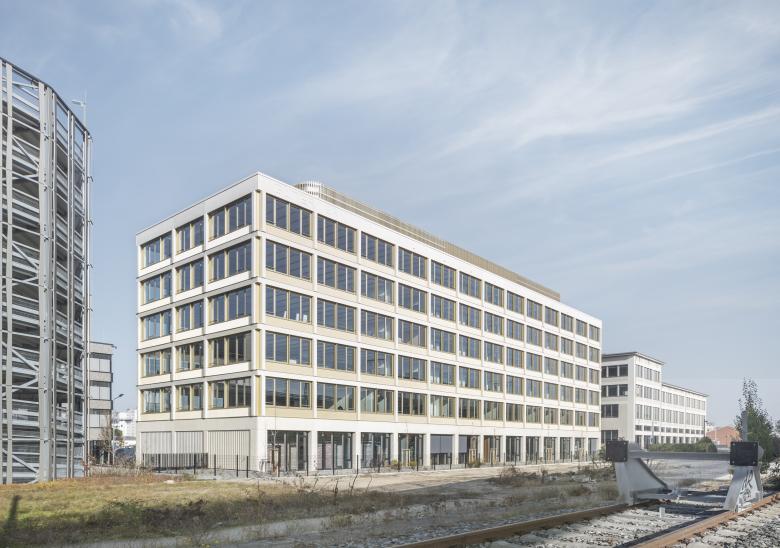 Die Aurelis Asset GmbH Eschborn ist Initiator einer Projektentwicklung am ehemaligen Kohlenhof in Nürnberg und hat eine Mehrfachbeauftragung für den Neubau eines Bürogebäudes ausgelobt. Die Aurelis Real Estate Service GmbH errichtete hier ein 6-geschossiges Bürogebäude mit 2-geschossiger Tiefgarage. Die Lage im Kohlenhof, dem ehemaligen Hauptgüterbahnhof, prägen angrenzende Verkehrsflächen und heterogene Baustrukturen. Auf Basis eines städtebaulichen Masterplans entstehen neue Strukturen für Büro- und Dienstleistung. Das Baufeld des Güterwerks liegt zwischen den neuen Projekten in einer Gebäudereihe, die eine Art Lärmschutzwall zur Bahnstrecke bilden. Das Güterwerk ist ein Gebäude mit 2 Tiefgaragenebenen, Büroflächen in allen fünf oberirdischen Geschossen und einer Dachterrasse. Im Erdgeschoss können gewerbliche Nutzungen wie Gastronomie untergebracht werden. Zwei innenliegende Treppenhäuser ermöglichen eine maximale Tageslichtorientierung der Mietflächen, deren rund 300 bis 1.500 qm pro Ebene eine hochflexible Struktur bieten. Im Bereich der Treppenhäuser können dienende Räume vorgesehen werden. Die Bürobereiche basieren auf einem Grundraster von 1,35 Metern. Die Gebäuderiegeltiefe ist zur Ausnutzung des Baufeldes dreibündig gewählt, sodass im klassischen Typ eines Kombi- bzw. Großraumbüros Bereiche zur internen Besprechung, Archivierung sowie Druck- und Kopierpools in der Mittelzone angeordnet, ebenso jedoch klassische Zellenbürotypologien umgesetzt werden können.