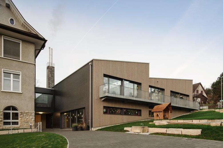 Das 1913 erbaute Primarschulhaus am Paul Suter-Weg 1 und die beiden von der Gemeinde betriebenen, aber abseits des Schulareals gelegenen Kindergärten entsprachen nicht den aktuellen Standards und dem Bildungsprogramm HarmoS. Daher wurden Schule und Kindergärten durch einen Neubau am Schulstandort zusammengeführt und die bestehenden Schulräume dem Bildungsstandard entsprechend umgestaltet.