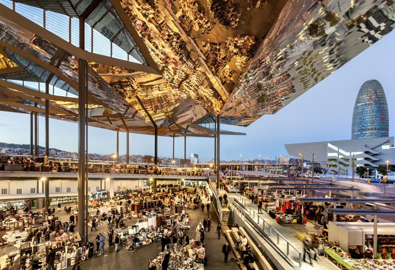 The new market “Mercat dels Encants” in Barcelona acts as a mediation device between the renovated Plaza de las Glorias, and the axis of the Meridiana, an area popularly known as “el Bosquet de les Glòries”.