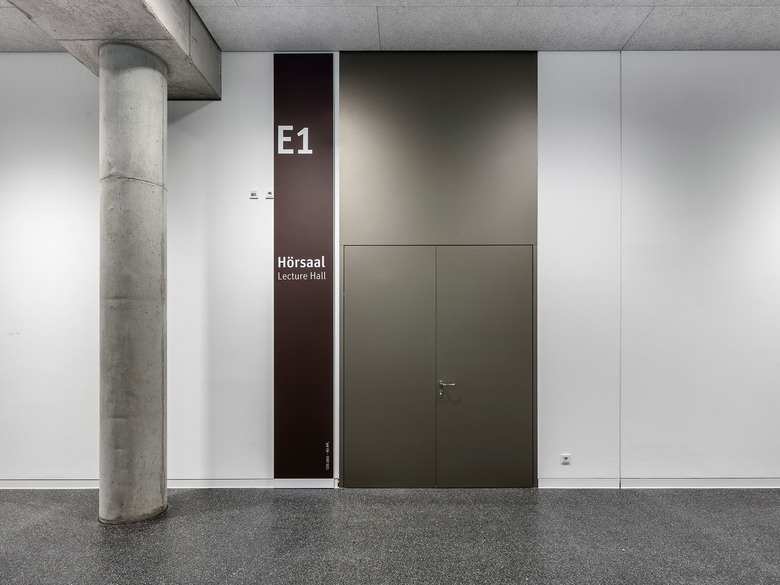 The main thoroughfare on the ground floor is over 200 meters long. From there, central access is provided to all 15 lecture halls and also to the main auditorium with 450 seats.