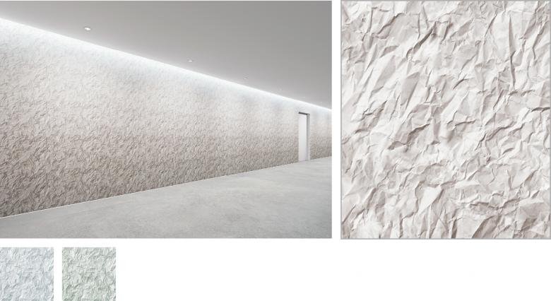 We dared to put the spotlight on paper, which is often used as a material for wallpaper. By folding, tearing, wrinkling, and otherwise adding various touches to the paper, the original beauty of paper was rethought and reappraised, Nature of Paper" was designed by rethinking the original beauty of paper by folding, tearing, and wrinkling it. Through this experimental process, the lineup embodies all the expressions of paper as "wall" and "paper".