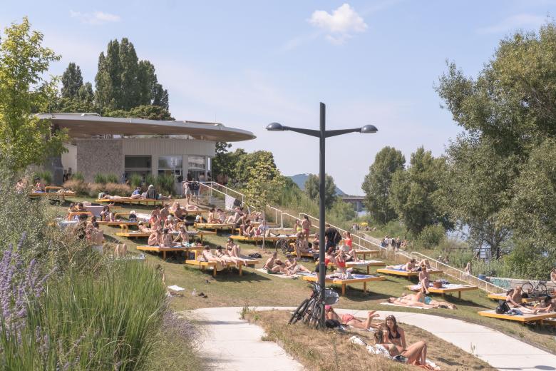 Thus, Pier 22 has become an open, robust and inclusive public space that strengthens the Danube Island as a place for everyone and expands its role as one of the city‘s central recreational areas.