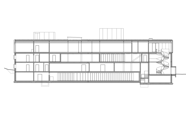 The current location of the existing office, amidst smaller and larger residential buildings cut off from the town centre by the railway line, hardly allows the public character of the institution to be expressed. We interpreted the need to double the amount of space at this location as a chance to translate the existing building into a powerful, self–confident form. We added an additional storey to the archive wing, although the competition brief explicitly excluded it. As a consequence the spatial programme is no longer organised horizontally but vertically. By placing the public zone on the second floor the visitors’ area is lifted out of the cramped topography. In the form of a glazed roof volume the new public zone now engages the urban district of Liestal, which lies on the far side of the railway line embankment. The vertical extension also allows the volume to be kept as compact as possible. The existing and the new levels form a single entity.