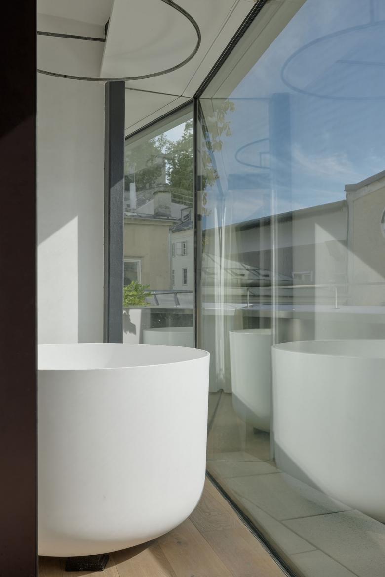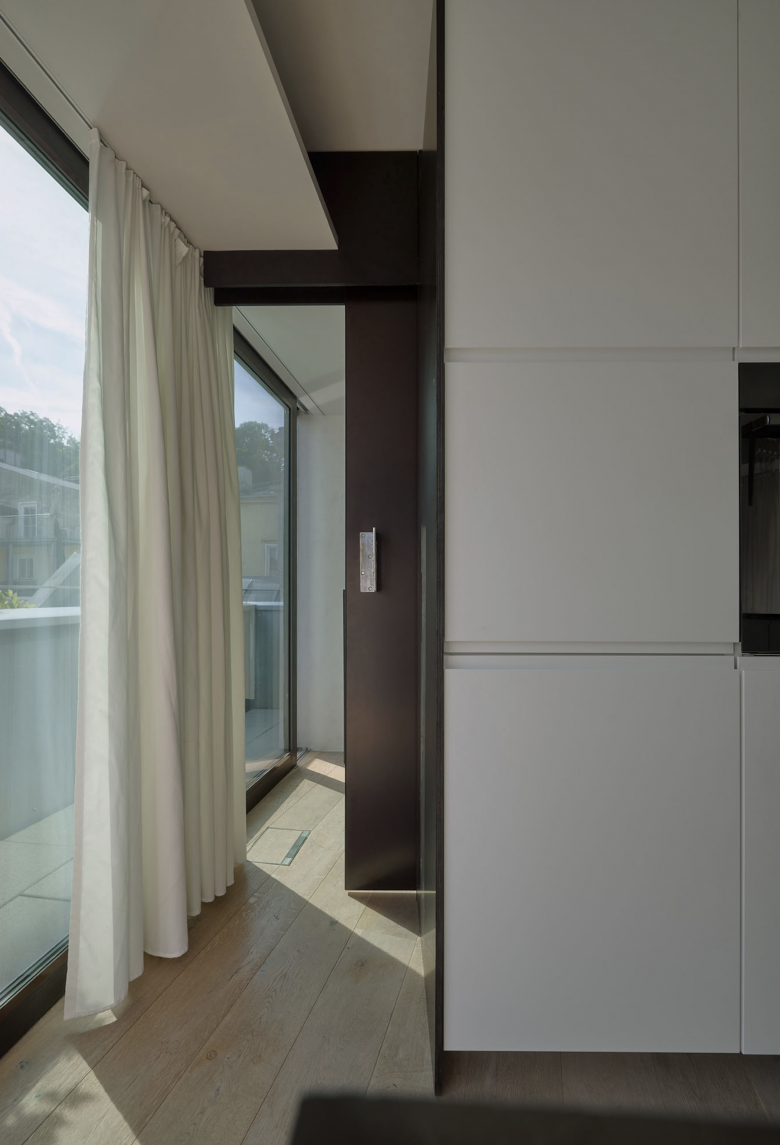 The generated electricity is u. a. A geothermal heat pump is operated, which heats in winter and is also used for cooling in summer. The room temperature is supported by controlled living space ventilation with heat recovery. Instead of fleeing the city, we focus on leisure time in the house in the city: "Feel good at home, in the office and in your own garden. The roof terrace incorporates the city into the living space and at the same time functions as a garden in which e.g. grow your own tomatoes. Planting and harvesting supports the prevailing idea of autonomy and sustainability and supports the quality of life.