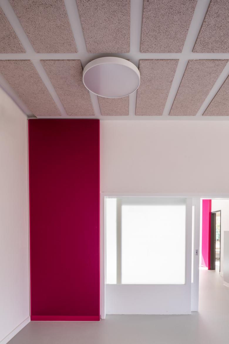 Die Inennräume der Kindertagesstätte an der Toni-Pfülf-Straße im Münchner Norden wurden umfassend saniert. Das gebäude ist aus dem Jahr 1965 und zum Anlass der Sanierung wurden zu hohe Nachhallzeiten und Brandschutzmängel. Die Sanierungsmaßnahme umfasste die Gruppen- und Ruheräume, Flure und Spielhallen.