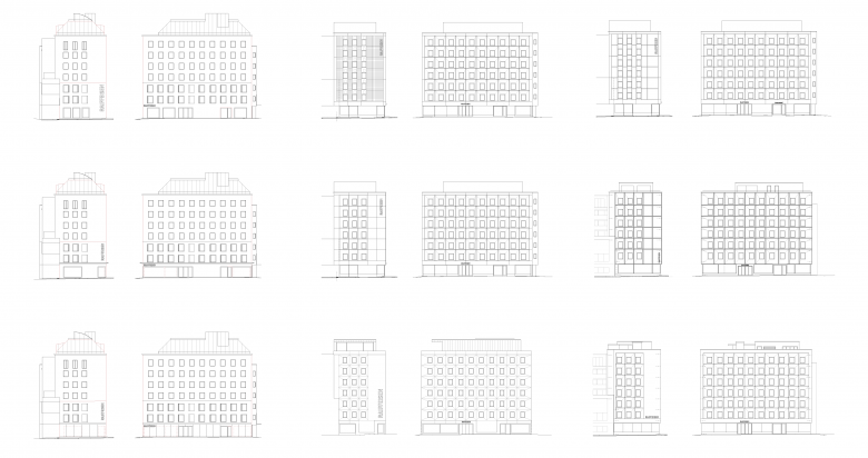 Das Wohn- und Geschäftshaus hat durch seinen modernistischen Ausdruck eine Eigenständigkeit, die in einem Kontrast zu den umliegenden historischen Bauten steht und dadurch eine eigenwillige Identität schafft. Die schlichte Lochfassade, geprägt von einem strengen Raster, wird bewusst beibehalten. Mit der reliefartigen Überformung der Fassade erfolgt eine Neuinterpretation der bossierten, historistischen Nachbarsfassaden und tritt trotz ehrlichem Beibehalten seiner modernistischen Züge in den Dialog mit diesen.
