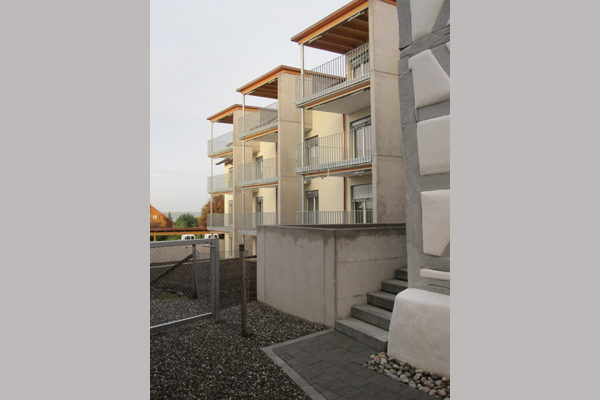 Das Konzept ging davon aus, dass das denkmalgeschützte Wohnhaus stehen blieb. Die übrigen Ökonomiebauten wurden abgebrochen und an deren Stelle wurde neu gebaut. Die neue Disposition übernahm weitgehend die ursprüngliche Gebäudestellung an der Dorfstrasse und Büsingerstrasse. Das bestehende Wohnhaus wurde mit einem Neubau ergänzt, sodass an der Dorfstrasse ein Kopfbau entstand. Entlang der Büsingerstrasse wurde ein Längsbau errichtet. Durch diese Anordnung entstand gegen Süden ein gut geschützter und optimal besonnter Hof.