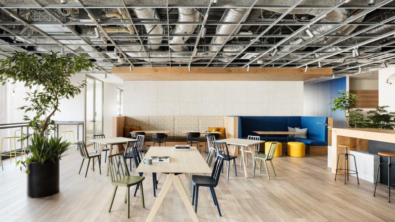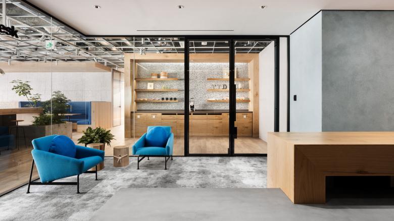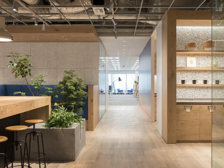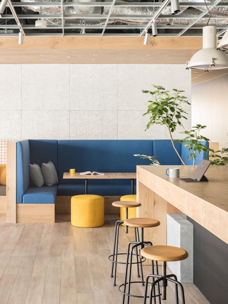 Inspired by the expansive and open atmosphere of the company’s West Coast headquarters, the Tokyo office brings that same spirit to life through the use of warm wood materials and a refreshing color palette reminiscent of clear ocean waters and skies. Changes in materials and strategically framed sightlines create a rhythm echoing the ebb and flow of waves, visually expressing the essence of the “West Coast Spirit “.