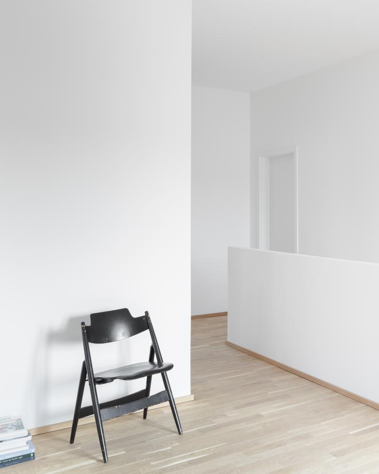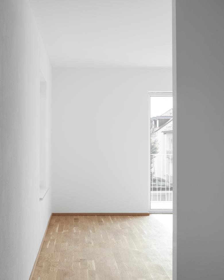 Ein zentral angeordneter Treppenhauskern führt in die Obergeschosse. Dort befinden sich jeweils sechs Wohneinheiten, wobei das zweite Obergeschoss zusammen mit dem Dachgeschoss Maisonettewohnungen beherbergt. Die Wohnungstypen erstrecken sich von