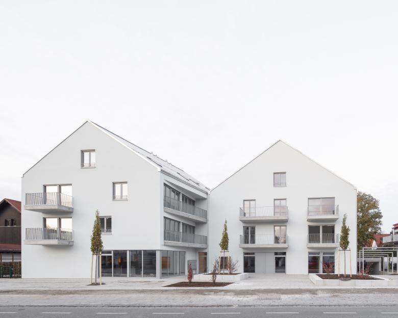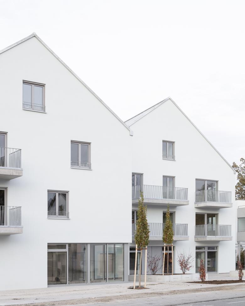 Auf zwei benachbarten Grundstücken entlang der Neubiberger Hauptstraße entsteht ein neues Wohn- und Geschäftshaus. Um die Straßenansicht aufzulockern, wird die Baumasse in zwei giebelständige Volumen unterteilt. Durch die leicht versetzte Anordnung der beiden Baukörper entsteht eine Platzsituation, welche sich zum Straßenraum hin öffnet. Der neu geschaffene Vorplatz lädt zum Verweilen ein und wertet den öffentlichen Raum entlang der Hauptstraße auf.