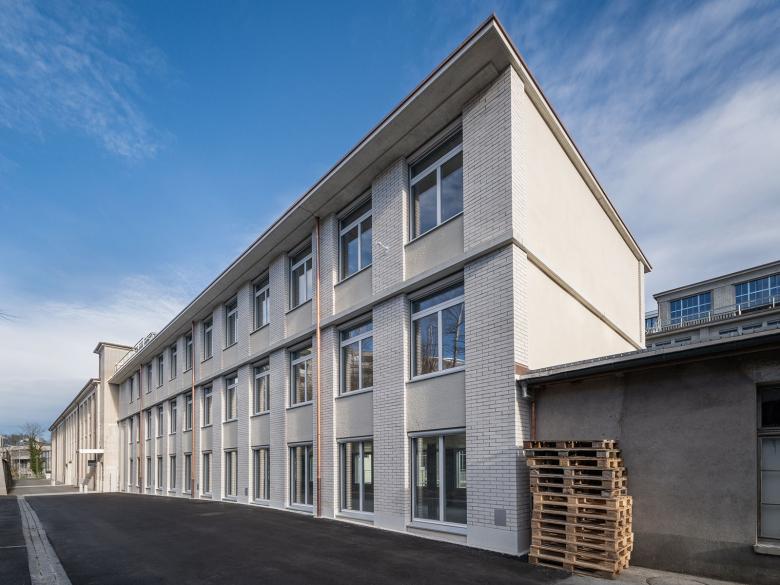Werkstattgebäude konnten wir die Nutzfläche vergrössern und einer vereinfachten Wandkonstruktion unter Beibehaltung der gemauerten Pfeiler in Kalksandstein konnten wir die Kosten optimieren. Entstanden ist ein Bürogebäude auf drei identischen Geschossen mit einer Grundstruktur, welche einen flexiblen Mieterausbau zulässt und einer strukturierten Fassade mit vertikaler Gliederung.
